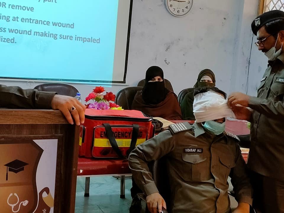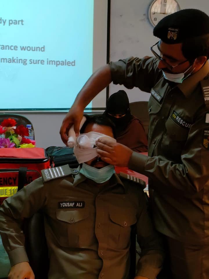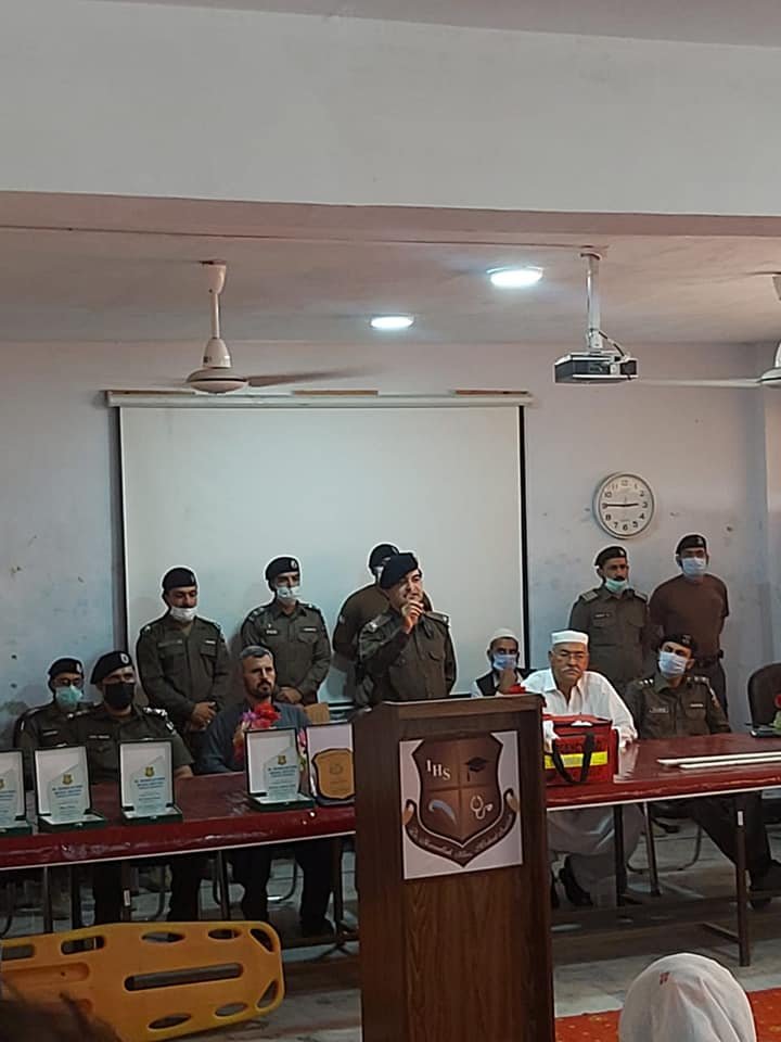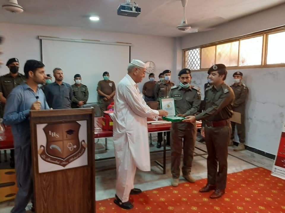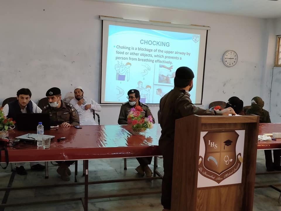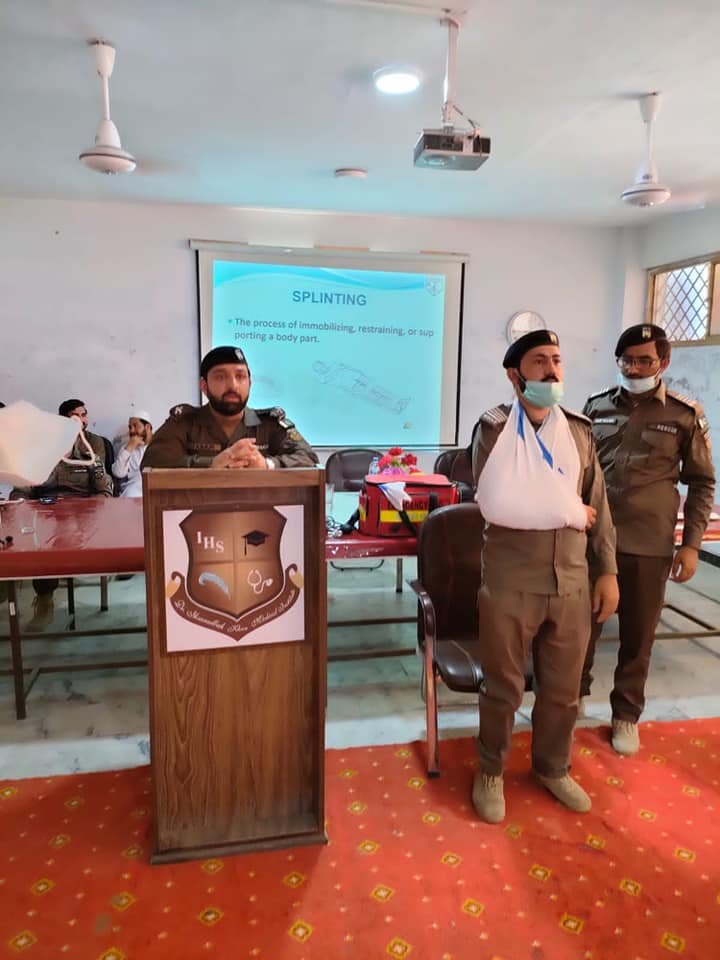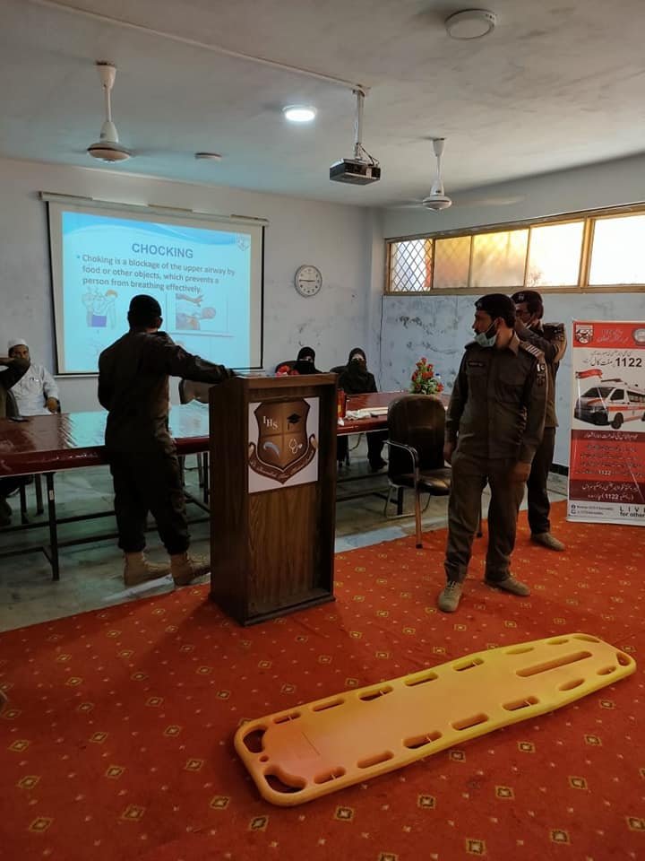 ” Today by the grace of Allah, IMI, organized it’s first BLS ( Basic Life Support ) training program with the Aid and unprecedented support of RESCUE 1122. We can not speak highly enough off RESCUE 1122 for their efforts in the field in time of need. We at IMI salute you for your hard work and dedication. As a token of appreciation, the organizers were presented with Shields and certificates were exchanged. “